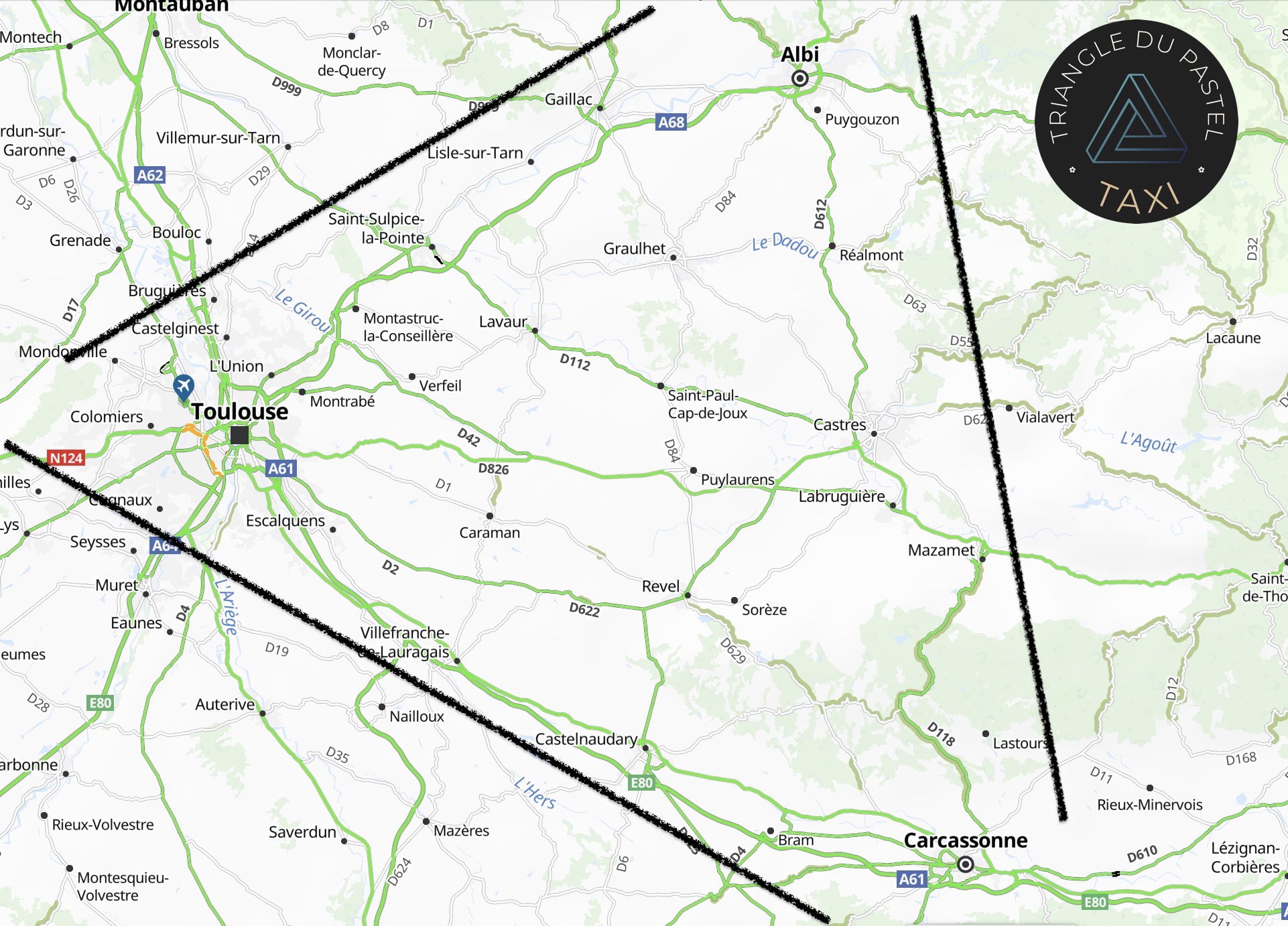 Disponible 24H/24 et 7J/7, l’entreprise vous propose ses services dans la zone géographique du Triangle du Pastel située entre Albi, Toulouse et Carcassonne, et assure vos transports depuis des villes comme Valderies ou Lavaur.